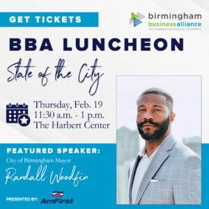 Kick off the year with insight and connection at the BBA’s first quarterly luncheon of 2026! We’re honored to welcome City of Birmingham Mayor Randall Woodfin to share his perspective on the State of the City, including the priorities, opportunities, and challenges shaping Birmingham’s future.